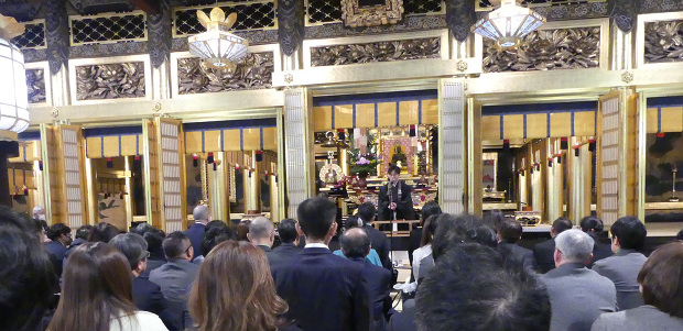 当日は、日私学保連・鹿濱德雄会長の挨拶、続いて京都府・寺田崇雄会長の歓迎の挨拶をいただいた後、第1部では京都先端科学大学附属中学高等学校校長・佐々井宏平先生による講演が行われ、第2部では西本願寺の参拝・拝観が実施された。