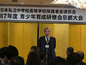 令和7年度青少年育成研修会が、令和7年11月21日(金)、京都府私立中学高等学校保護者会連合会をはじめ、西本願寺、龍谷大学付属平安中学高等学校のご協力のもと、京都市「聞法会館」を会場に開催され、全国の私学保護者会から約155名が参加した。